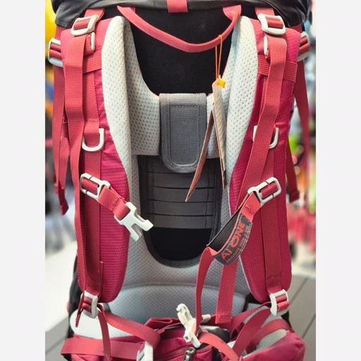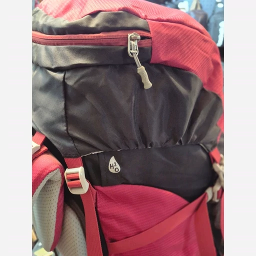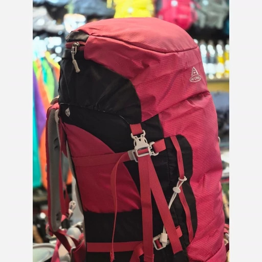 بدنه کوله از نایلون 420D با روکش PU ساخته شده که مقاومت بالایی در برابر سایش، پارگی و نفوذ آب دارد. فریم آلومینیومی داخلی علاوهبر سبک بودن، به توزیع متعادل وزن کمک میکند و کمربند پددار متحرک فشار روی کمر را کاهش میدهد، حتی هنگام حرکات دینامیک.طراحی پشت کوله شامل پدهای مشبک و سیستم گردش هوای AirFLOW است که از تعریق زیاد در ناحیه کمر جلوگیری کرده و راحتی بیشتری را در مسیرهای طولانی فراهم میکند. این کوله به محفظهای مخصوص حمل کیسه خواب مجهز است که هم از بالا و هم از پایین دسترسی دارد. یک محفظه جداگانه برای کیسه آب (کمل بک) با خروجی شلنگ تعبیه شده تا نوشیدن در حرکت آسانتر باشد. همچنین، جیبهای کمری، کناری و جلویی امکان دسترسی سریع به وسایل کوچک را فراهم میکنند.در قسمت بیرونی، لوپها و بندهای مخصوصی برای حمل تجهیزات کوهنوردی مانند باتوم، چادر، زیرانداز و حتی تبر یخ در نظر گرفته شده که آن را به گزینهای حرفهای برای مسیرهای دشوار بدل کرده است.وجود سوت اضطراری روی سگک سینه و بندهای فشردهسازی جانبی نیز نشاندهنده توجه طراحان به جزئیات ایمنی و پایداری بار در مسیر است.